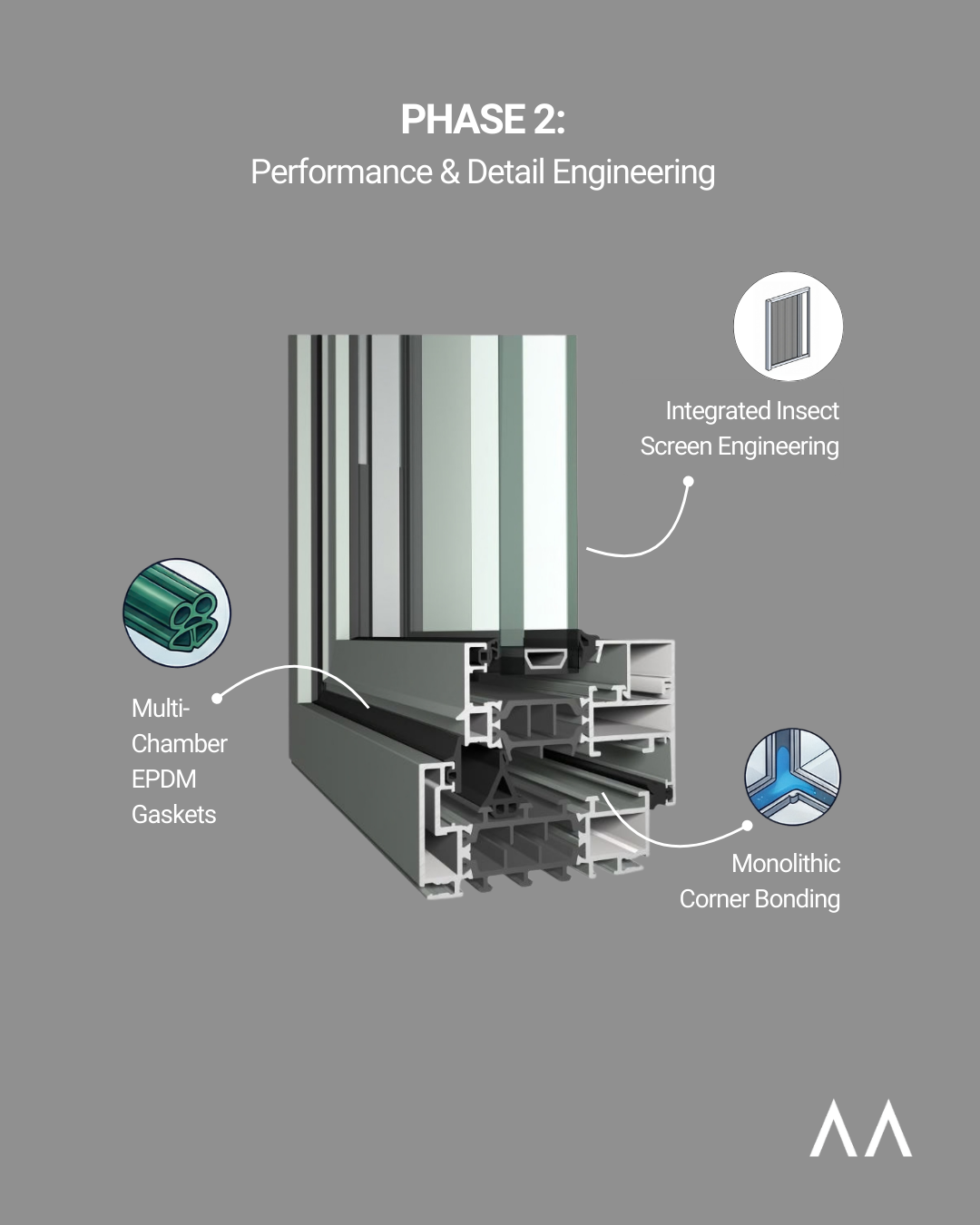 VELTAA insect screen systems are not designed as add-ons—they are engineered as an integral part of the joinery system. Accurate sizing and technical detailing ensure seamless operation with the primary aluminum profiles.